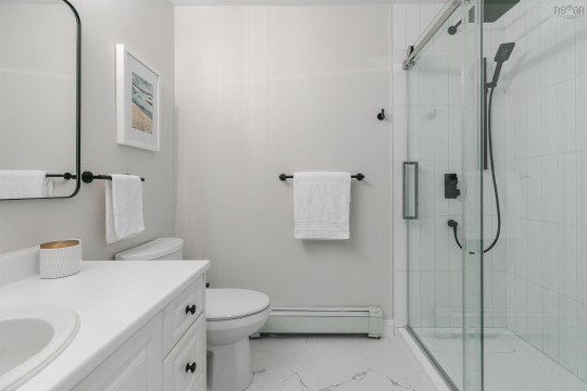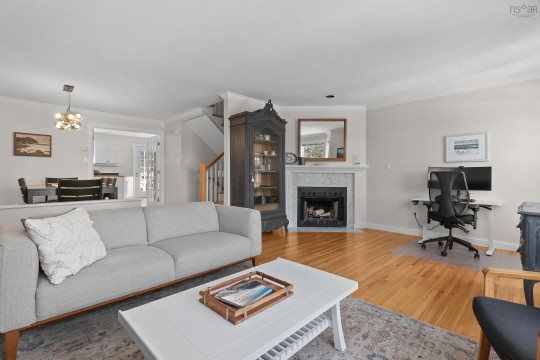 Welcome to Regatta Point, a friendly and active community on the Northwest Arm offering an exceptional balance of vibrant city life by the seaside. Located on a quiet cul-de-sac, this meticulously maintained freehold townhouse enjoys seasonal ocean views across the street and easy access to the Northwest Arm seawall, perfect for walking, running, kayaking, or paddle boarding. Walk to Armdale Yacht Club, Chocolate Lake, parks & recreation facilities, and yoga, all while being just minutes from downtown Halifax, shopping, restaurants, and easy access out of the city. Inside, the first level features a large, flexible room with 9-foot ceilings and custom built-in shelving, ideal for a family room, office, gym, or guest space, plus a convenient half bath. The main level offers a spacious living room with a wood-burning fireplace, a dining room, an eat-in kitchen and pantry, and access to a sun-soaked back deck overlooking a private, beautifully treed backyard with no rear neighbours: it really is one of the nicest in the neighbourhood. Upstairs, find the spacious primary with walk-in closet & ensuite bathroom, two more generously sized bedrooms overlooking the forest, a family bathroom, and laundry. The attached garage is heated and wired and has extensive storage. This house is move-in ready, with numerous recent updates including all new plumbing (no Poly-B!), full interior repaint, renovated bathrooms, new hardwood in the primary suite, a new fireplace surround, and new dishwasher, washer, and dryer. This is Northwest Arm living at its very best, where nature, neighbourhood, and city convenience come together effortlessly.