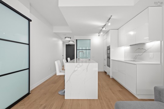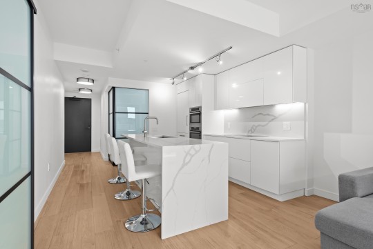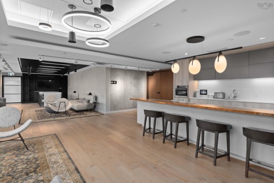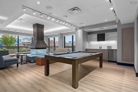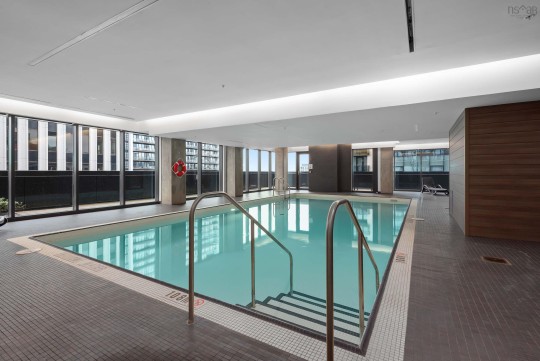 Experience an elevated living experience of classic grandeur and modern comfort in the heart of Halifax. The iconic design by Page + Steele IBI Group and Union 31 reinvigorates one of downtown Halifax's landmark buildings. The Roy is the perfect balance of aesthetic and practical considerations. Enjoy floor to ceiling windows that flood the room with sun and dynamic views of our beautiful city. The kitchen island has seating for 4 and is lined with quartz. Setting this unit apart is an upgraded kitchen appliance package, custom motorized blinds, and in-unit laundry. The set back terrace allows you to experience the vibe of the city while enjoying incredible views of the Halifax Harbor in both directions. The Roy Club occupies the entire 8th floor of the building (10,000 square feet) and is exclusively available to residents. Rejuvenate yourself in the pool, sauna, steam room, or private treatment room. Stay active year-round in the yoga room and the well-equipped fitness center. Curl up with a book in the library, watch a film or the big game in the theatre, or play billiards. If you're entertaining, there is a party room, dining space, a kitchen and a bar, as well as a BBQ on the furnished terrace. Overnight guests will enjoy having their own space in the guest suite.