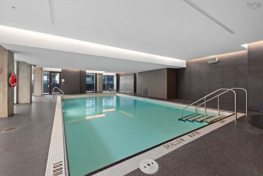 Experience an elevated living experience of classic grandeur and modern comfort in the heart of Halifax. The iconic design by Page + Steele IBI Group and Union 31 reinvigorates one of downtown Halifax's landmark buildings. The Roy is the perfect balance of aesthetic and practical considerations. Enjoy floor to ceiling windows that flood the room with sun and dynamic views of our beautiful city. The kitchen island has seating for 4 and is lined with quartz. Setting this unit apart is an upgraded kitchen appliance package, custom motorized blinds, and in-unit laundry. The set back terrace allows you to experience the vibe of the city while enjoying incredible views of the Halifax Harbor in both directions. The Roy Club occupies the entire 8th floor of the building (10,000 square feet) and is exclusively available to residents. Rejuvenate yourself in the pool, sauna, steam room, or private treatment room. Stay active year-round in the yoga room and the well-equipped fitness center. Curl up with a book in the library, watch a film or the big game in the theatre, or play billiards. If you're entertaining, there is a party room, dining space, a kitchen and a bar, as well as a BBQ on the furnished terrace. Overnight guests will enjoy having their own space in the guest suite.