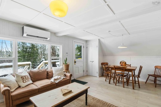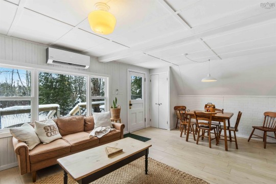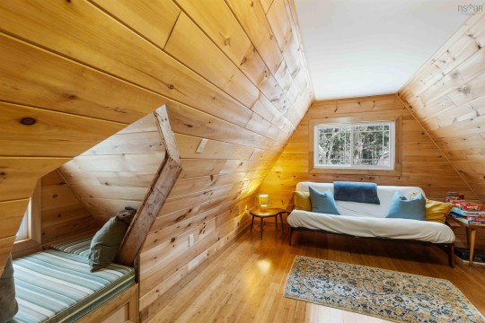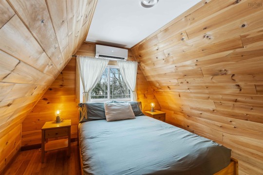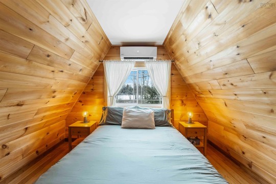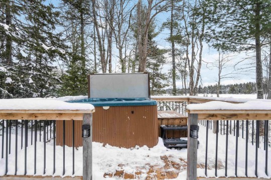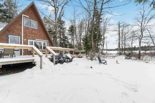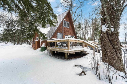 Charming waterfront A-frame located on a private treed lot with direct waterfront access and breathtaking views. Perfectly suited as a personal retreat and/or a short-term rental with a proven revenue stream. Thoughtfully renovated and winterized (2021), making it an ideal getaway, no matter the time of year. Soak in the hot tub and relax in the colder months or enjoy cross-country skiing through the snow-covered landscape. When warmer months arrive, take advantage of peaceful East Lake and explore the beauty of each season. The property offers the privacy of a serene sanctuary while being just a short drive from nearby amenities. Some recent updates include a metal roof, propane heaters, heat pumps, decks, electrical, aesthetic and more. The main level features a spacious bedroom, functional kitchen with butcher block counters. The bright open concept living and dining area features a cozy wood burning stove and heat pump ensuring year-round climate control. Off the dining room is access to the renovated back deck with hot tub and walkway to the East Lake. Upstairs you will find a versatile flex space used as a secondary living area and third bedroom and the primary bedroom with upstairs heat pump. Included in sale is an additional vacant waterfront lot which can be developed or sold. Whether you're seeking a seasonal retreat or a year-round investment property, this cottage provides the best of both worlds.