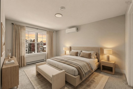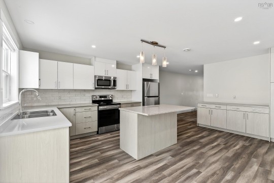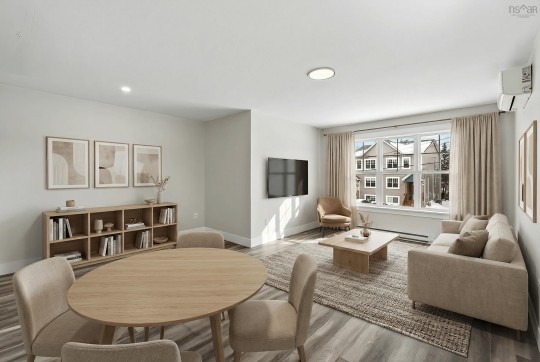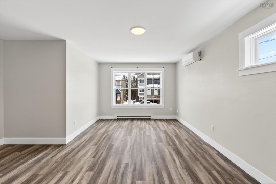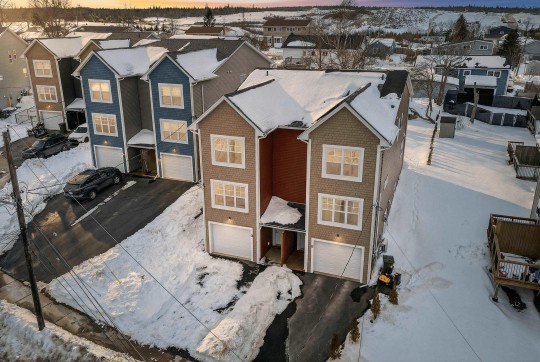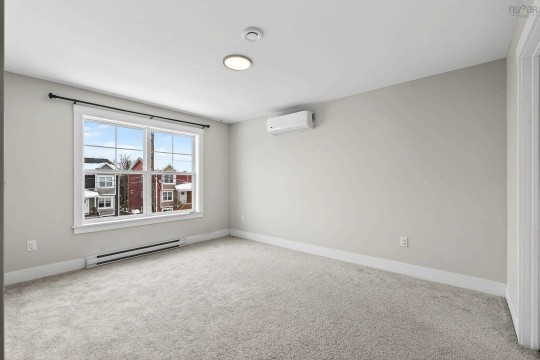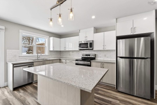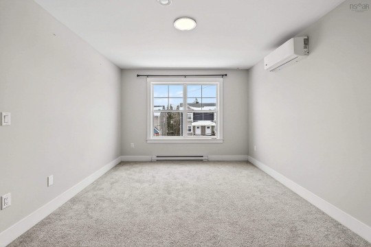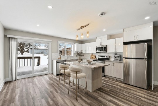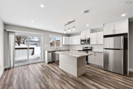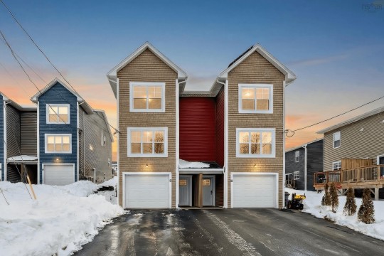 Beautifully maintained 3-bedroom, 4-bath semi-detached home with three finished levels and attached garage. Ideally located within a family-oriented neighbourhood, close to walking trails, parks, schools, and Peninsula Halifax. The main level offers exceptional flexibility with a spacious den and full four-piece bath. This area can easily convert into a large fourth bedroom with its own ensuite, making it perfect for guests, extended family, a private home office, or a family den. The second level features a bright, open-concept living and dining area with an ideal layout for comfortable everyday living and entertaining. It includes a spacious kitchen complete with an eat-at island, stainless steel appliances, and patio access to a private deck with stairs leading down to the landscaped backyard. Upstairs you will find a generous primary bedroom with a 5-piece ensuite, two additional well-sized bedrooms, and a full 4-piece bath. Equipped with two heat pumps for efficient heating and cooling, this home offers comfort, functionality, and versatility in a highly desirable location.