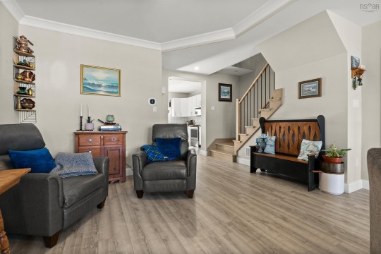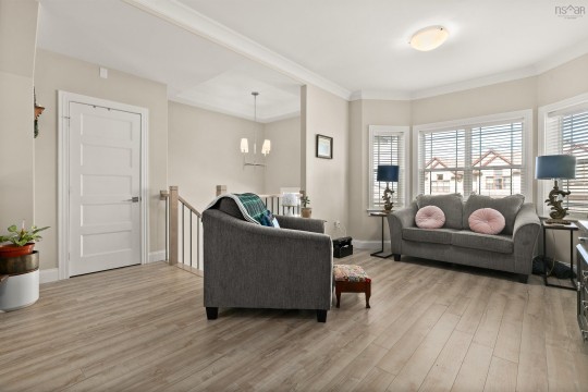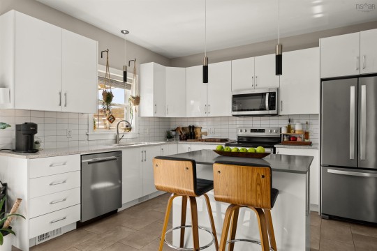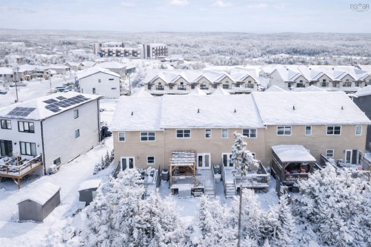 Nestled in the highly sought-after Brunello Estates, this stunning townhome offers the perfect blend of modern comfort and convenient living. Step inside and be greeted by a beautifully appointed interior, featuring a sleek, contemporary kitchen with a large island – perfect for entertaining or casual meals. The neutral color palette and hardwood floors throughout create a sophisticated and inviting atmosphere. Hardwood stairs add an elegant touch. This spacious home boasts three well-proportioned bedrooms, ideal for a growing family. The large, finished basement provides additional living space, perfect for a media room, home office, or play area. Enjoy year-round comfort and energy efficiency with the ducted heat pump. The highlight of outdoor living is the expansive back deck with coveted south exposure, offering a bright and sunny spot for relaxation. The single-car garage provides convenience and extra storage. With a close commute to Halifax and easy access to major highways and the airport, this location is incredibly convenient. Plus, you'll appreciate the top-floor laundry for ultimate ease.