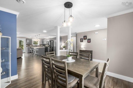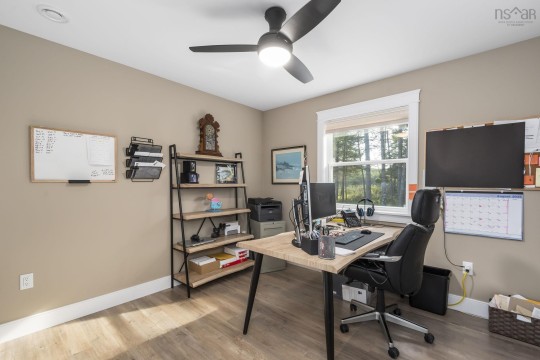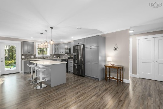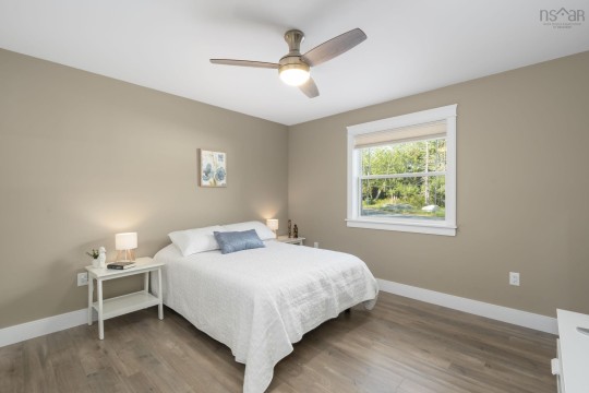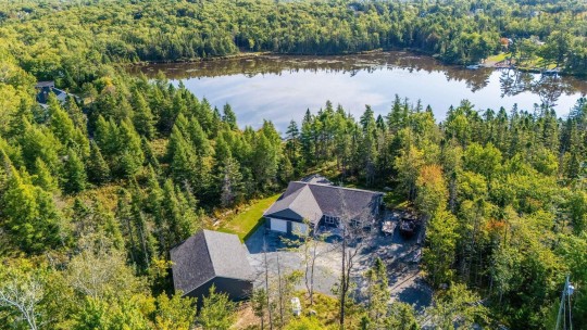 This stunning three-year-old lakefront property offers unparalleled privacy on a quiet 2 acres lot. The accessible-designed home is perfect for anyone seeking tranquility and convenience all on one level. With a custom built kitchen designed for function and entertaining, the traditional NS kitchen party has been elevated to a new level. The living room features a coffered ceiling to add interest and control sound. The primary bedroom is grand with vaulted ceiling, deluxe walk-in closet and ensuite bath. Every detail of happy living has been considered including a dedicated dog bath in the laundry room. Mini split heat pumps and in-floor radiant heat keep the home at a comfortable temperature year round with no need for home heating oil. The property boasts both detached and attached garages. Both are wired and heated including a dedicated heat pump for the detached garage. Have you dreamed of a carpentry workshop? You will find ample space for all your projects . Enjoy direct lake access for canoeing, fishing, and skating.