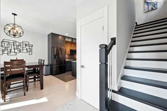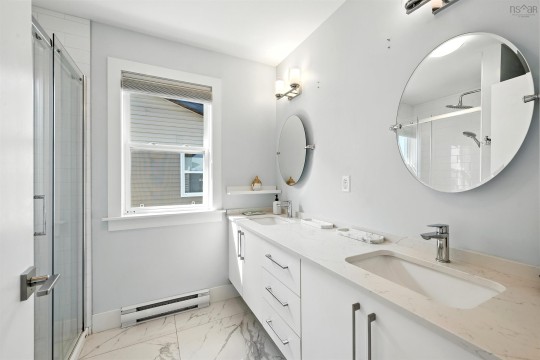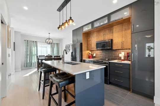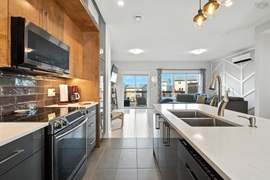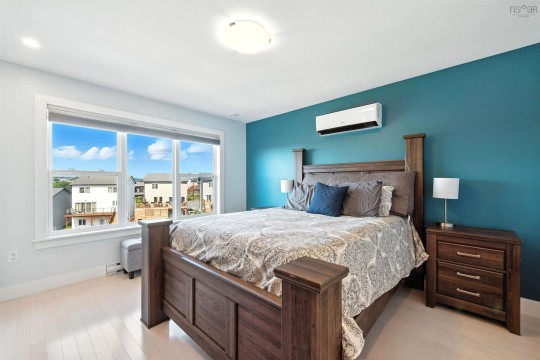 Welcome to 32 Travertine Court, a stunning single-family home, nestled in the desirable, recently developed Governors Brook. This property immediately captivates with its immaculate landscaping, hinting at the comfort within. Designed with thoughtful precision and a seamless flow, this 4-bedroom, 4-bathroom residence offers abundant space for the entire family to thrive and relax. Natural light fills every room, creating a bright and cheerful ambiance throughout. The open-concept main floor and a spacious rec room on the walkout lower level are ideal for entertaining. Equally inviting is the lovingly maintained backyard, featuring a large shed, gardens, and two decks (one on each level). At the heart of this home is a warm and inviting atmosphere that perfectly blends practicality with comfort and form with function. This home boasts numerous fantastic features, including ductless heat pumps for year-round comfort, quartz countertops, hardwood flooring, and upgraded vanities and fixtures that add a touch of elegance. The living room is further enhanced by a striking fireplace adorned with live edge wood and stunning stonework. All of this is situated within a wonderful, family-oriented neighborhood.