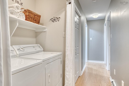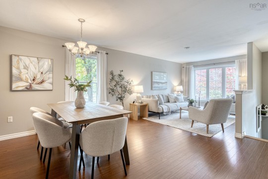 Welcome to Rockhaven Drive, a mature tree-lined street with views of the Bedford Basin and minutes to the peninsula. 4B boasts the perfect floorplan. A main level perfect for entertaining with its inviting living area, dining room for dinner parties and a very generous kitchen leading to a private patio. To complete the package, there is a convenient powder room. The upper level offers a primary suite with full bath and walk in closet, plus its own deck, the perfect perch to enjoy your morning coffee while enjoying basin views. There are two additional bedrooms, a three piece bath and upper level laundry as an added convenience. The lower level consists of a generous garage space with its own exterior entrance and an added bonus! Located off the garage is a finished flex space with its own attached bath which makes the perfect home office. With a 2nd laundry hook up present, this area could also work well as a home based aesthetics business. The possibilities are endless!